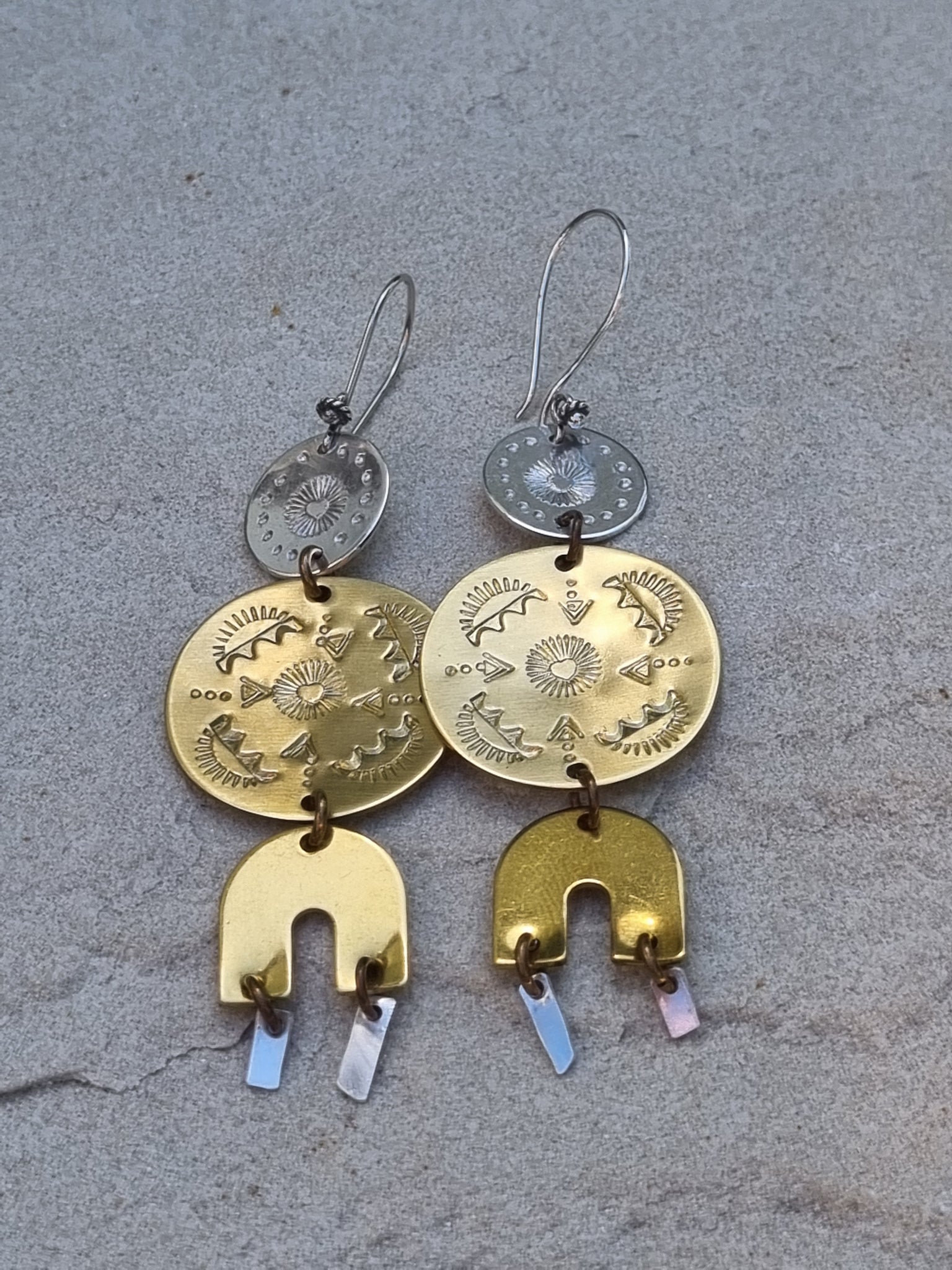 Brassy Beauties! Handstamped in Brass & sterling silver.